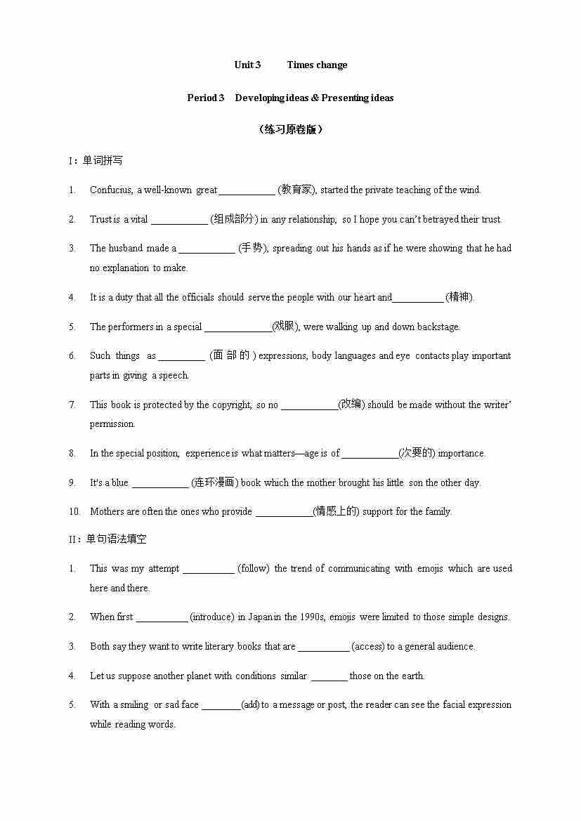 Unit 3 Times change Period 3 Developing ideas and presenting ideas 练习(原卷版)-(外研版选择性必修第二册)