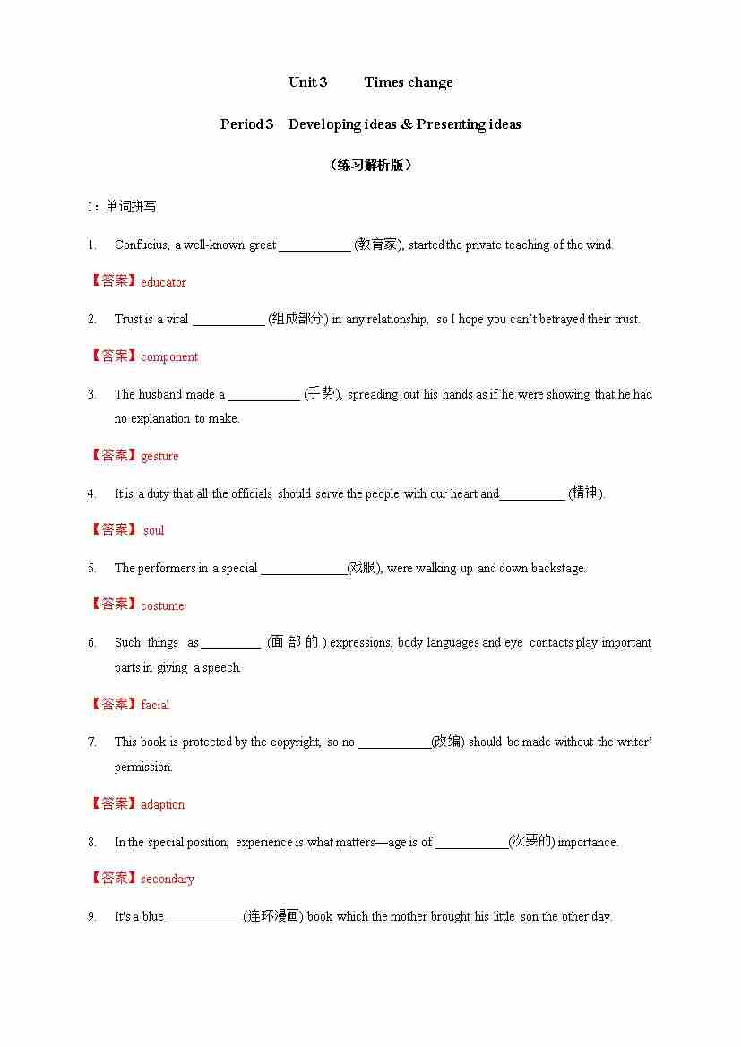 Unit 3 Times change Period 3 Developing ideas and presenting ideas 练习(解析版)-(外研版选择性必修第二册)