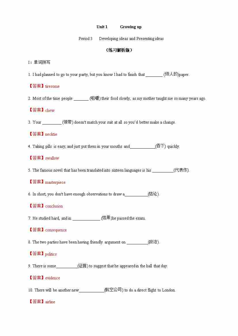 Unit 1 Growing up Period 3 Developing ideas and presenting ideas练习 (解析版)-(外研版选择性必修第二册)