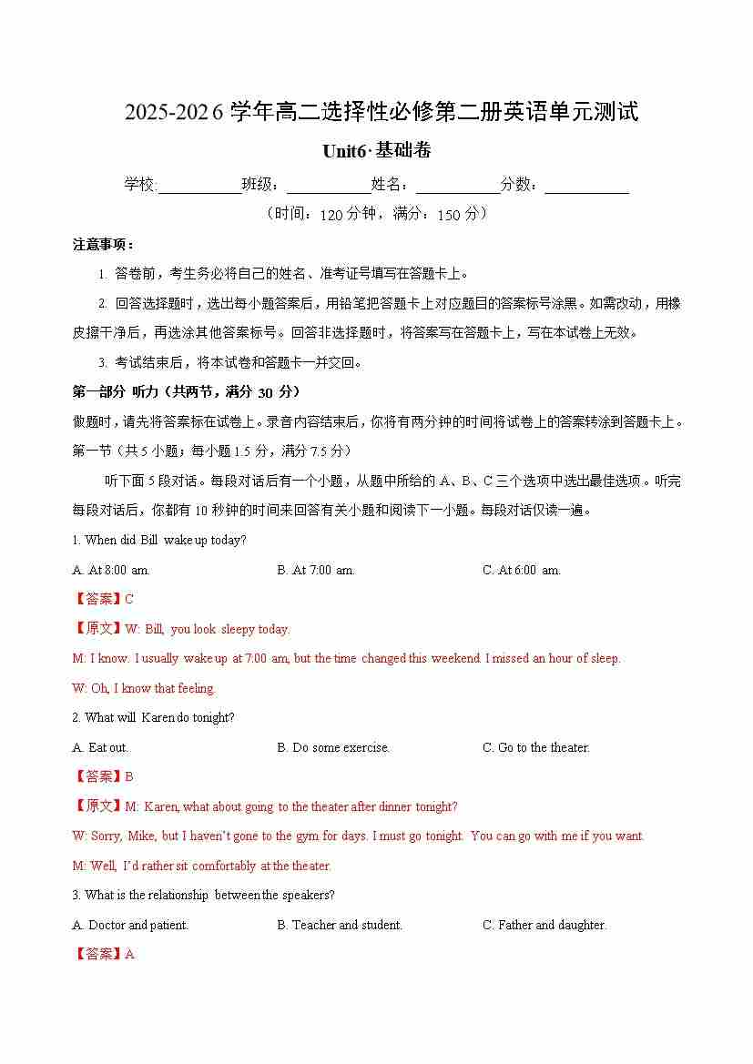 首页 > 全部 > 单元测试 > 英语选择性必修第二册Unit6单元测试·基础卷(解析版)