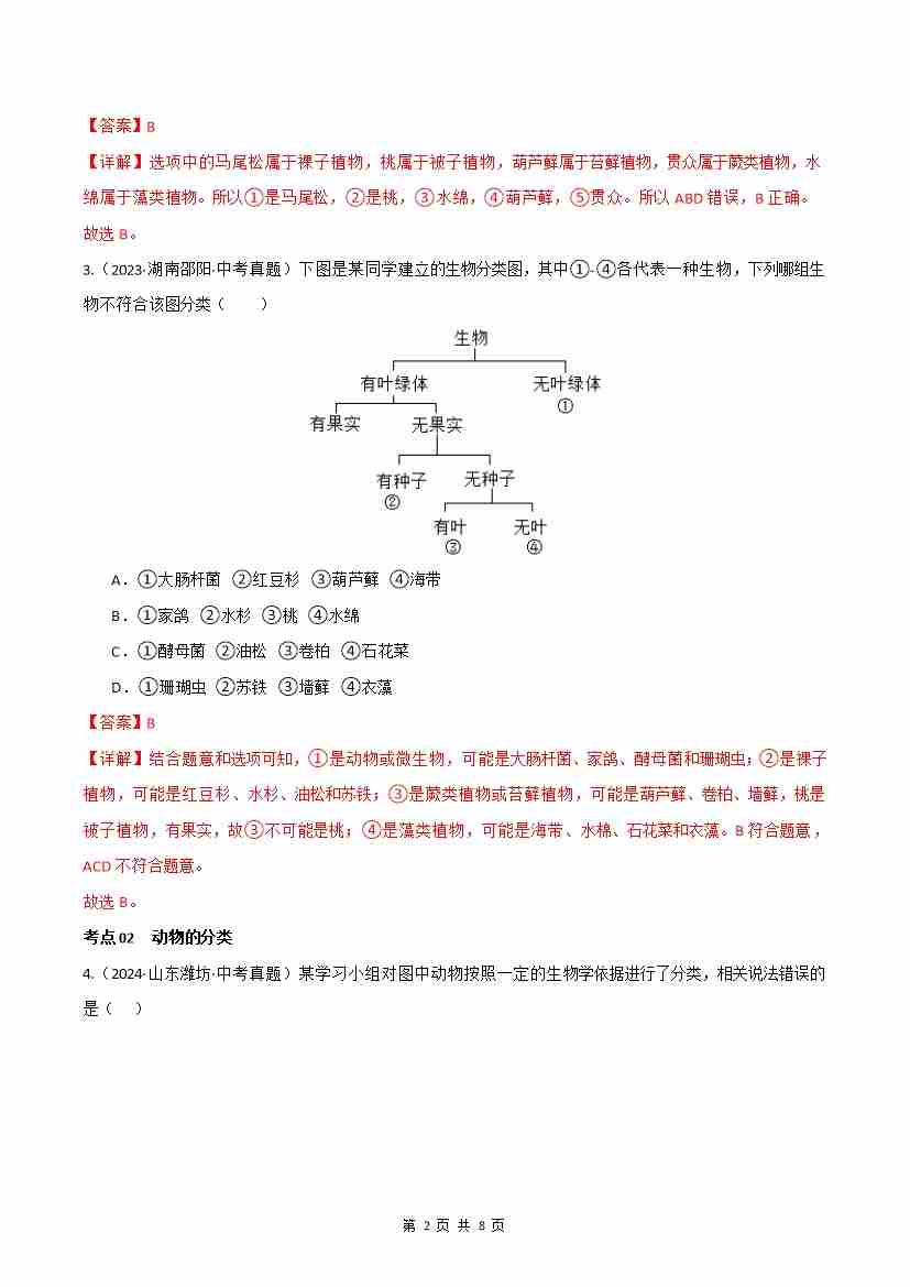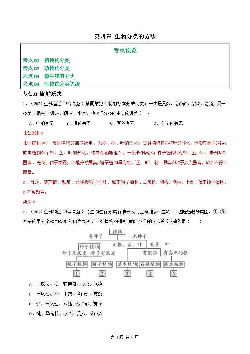 首页 > 全部 > 单元检测 > 第2单元 第4章 生物分类的方法【单元卷·考点卷】(4大考点)(解析版)