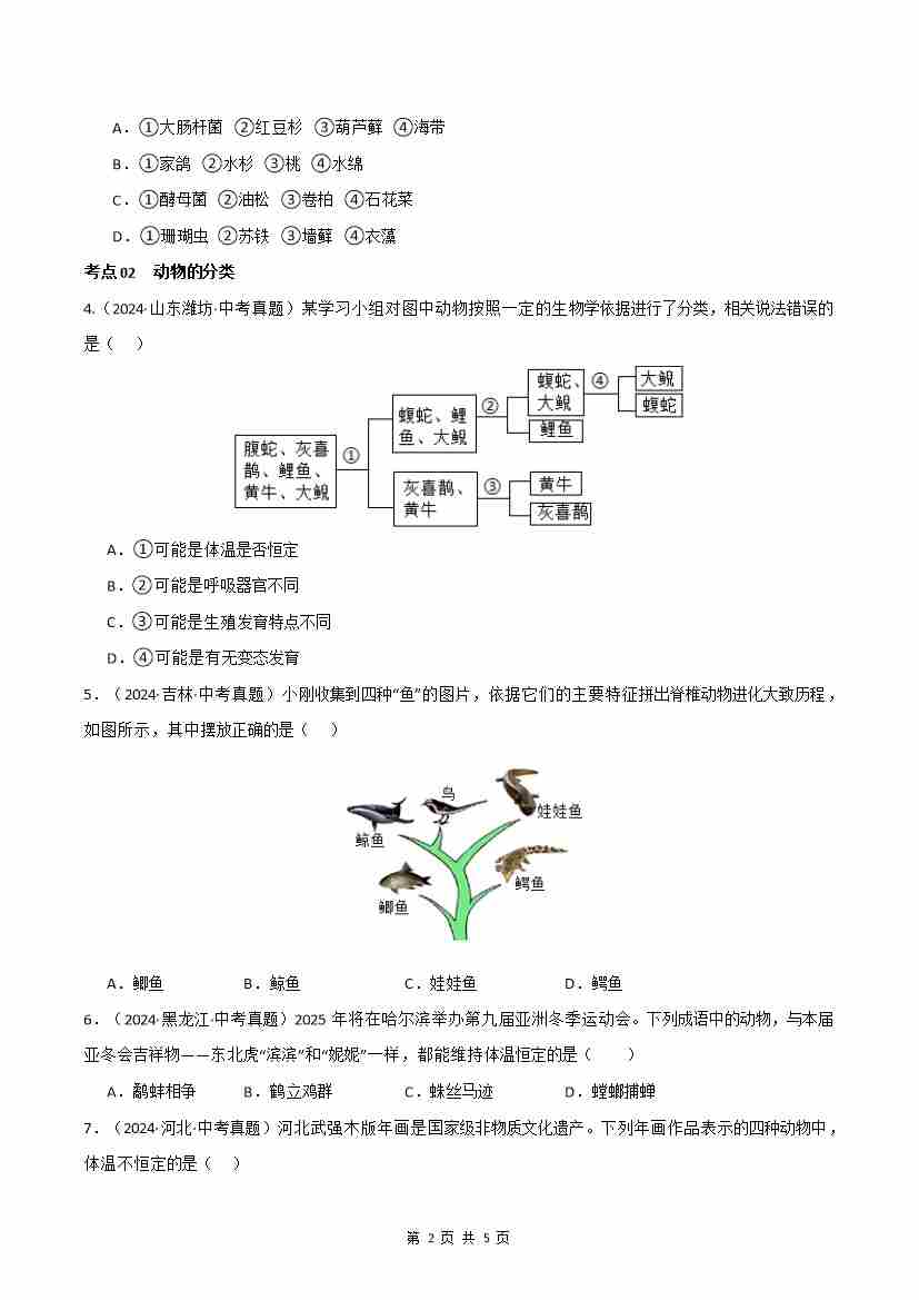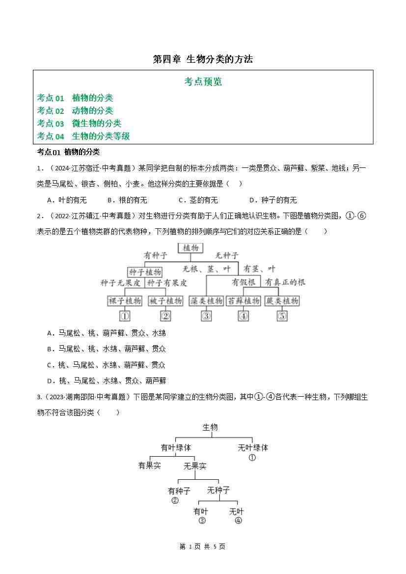 首页 > 全部 > 单元检测 > 第2单元 第4章 生物分类的方法【单元卷·考点卷】(4大考点)(原卷版)
