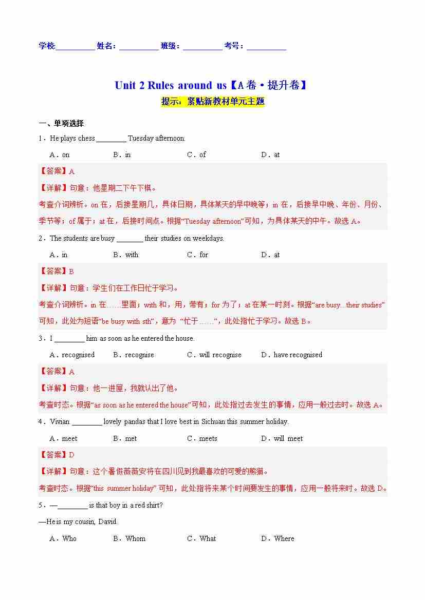 首页 > 全部 > 单元测试 > Unit 2 Rules around us (A卷·提升卷)(教师版)