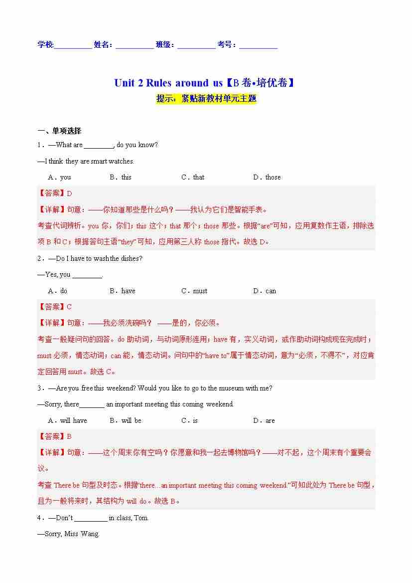 首页 > 全部 > 单元测试 > Unit 2 Rules around us (B卷·培优卷)(教师版)