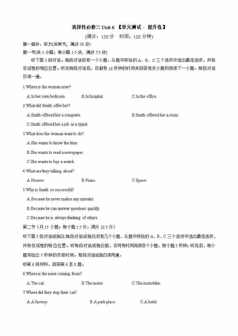 首页 > 全部 > 单元试卷 > 选择性必修3 Unit6(单元测试 · 提升卷)(外研版2019)(学生版)