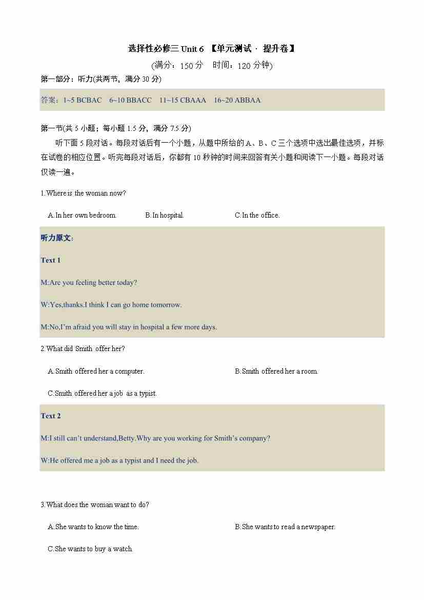 首页 > 全部 > 单元试卷 > 选择性必修3 Unit6(单元测试 · 提升卷)(外研版2019)(教师版)