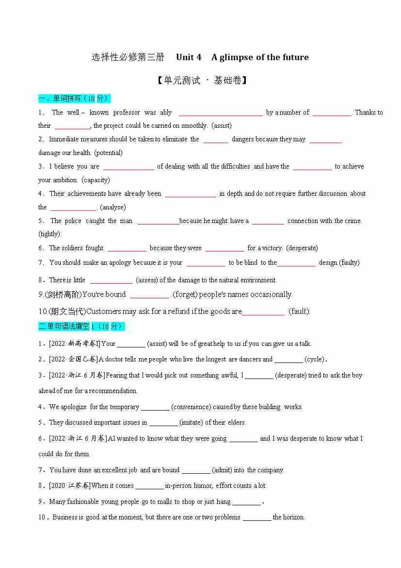 选择性必修第三册 Unit4(单元测试 · 基础卷)(外研版2019)(学生)