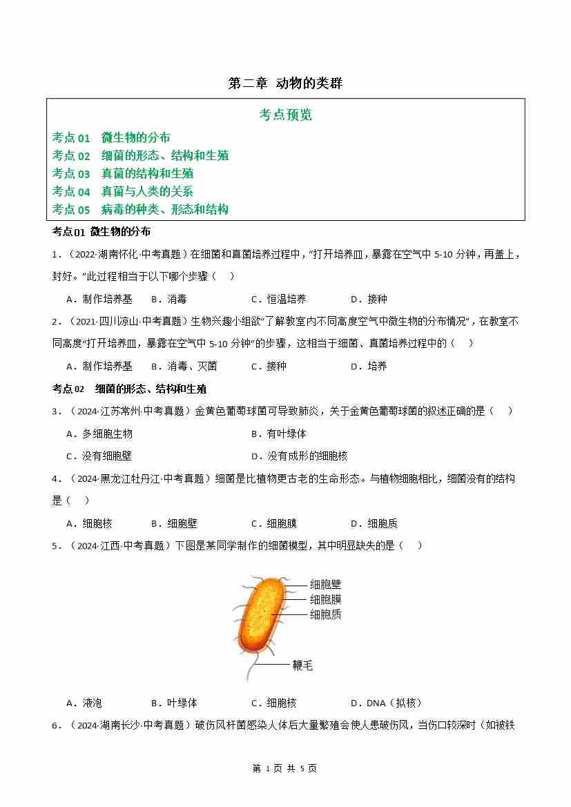 首页 > 全部 > 单元检测 > 第2单元第3章 微生物【单元卷·考点】(5大考点)(原卷版)