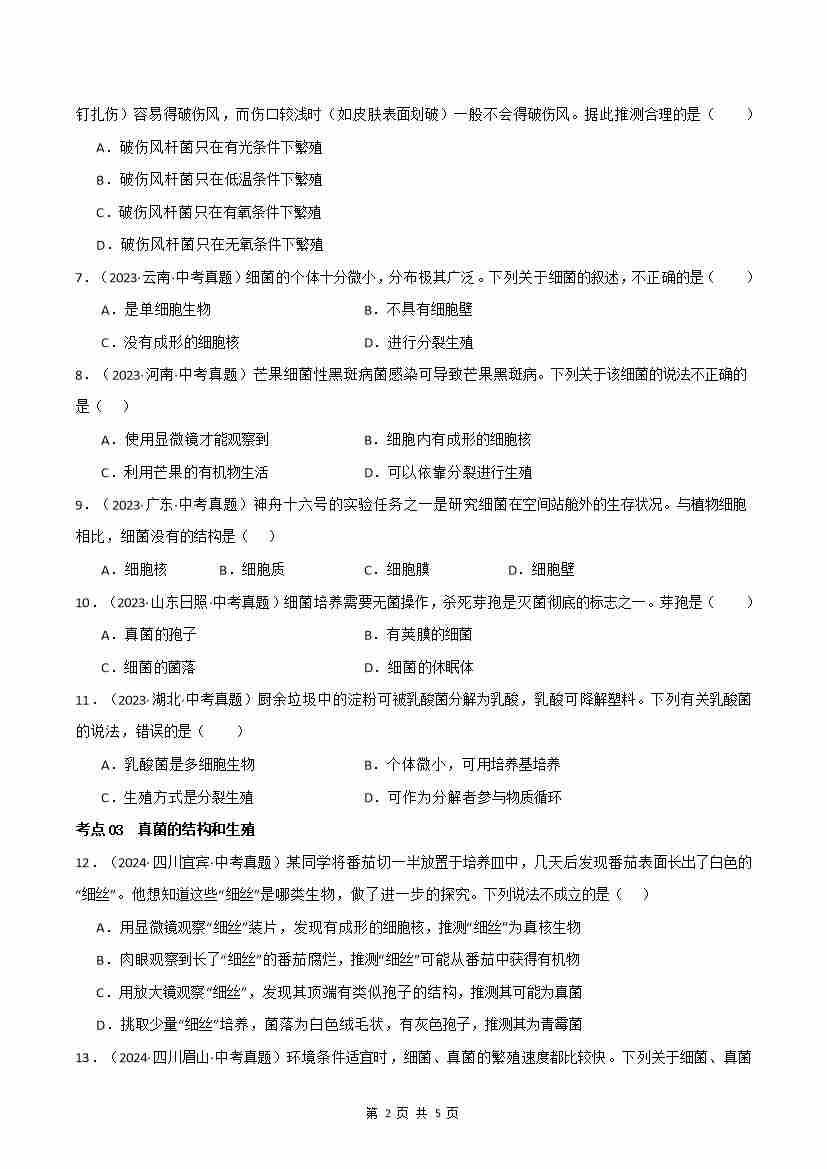第2单元第3章 微生物【单元卷·考点】(5大考点)(原卷版)