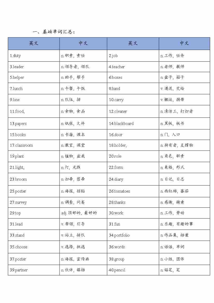 首页 > 全部 > 知识总结 > Unit6 I’m on Duty (知识清单)-教科版(2024)英语三年级下册