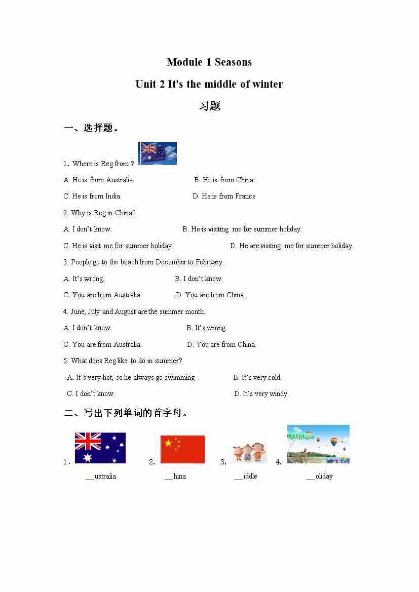 首页 > 全部 > 一课一练 > Module 1 Unit 2 It's the middle of winter习题