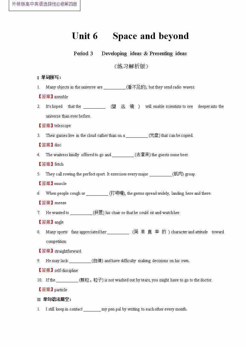 首页 > 全部 > 同步练习 > Unit 6 Space and beyond Period 3 Developing ideas and presenting ideas 练习-(外研版选择性必修第四册).