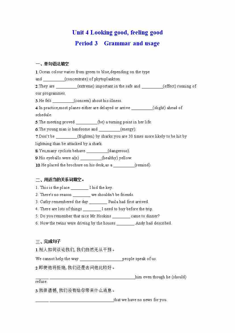 首页 > 全部 > 分层作业 > Unit 4 Looking good, feeling good Period 3 Grammar and usage(分层练习)(原卷版) ---(译林版2020必修第一册)