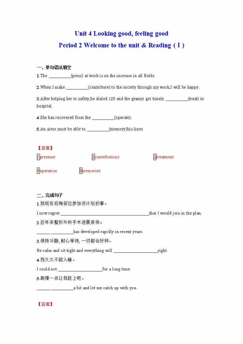 首页 > 全部 > 分层作业 > Unit 4 Looking good, feeling good Period 2 Welcome to the unit & Reading (Ⅰ) (分层练习)(解析版)---(译林版2020必修第一册)