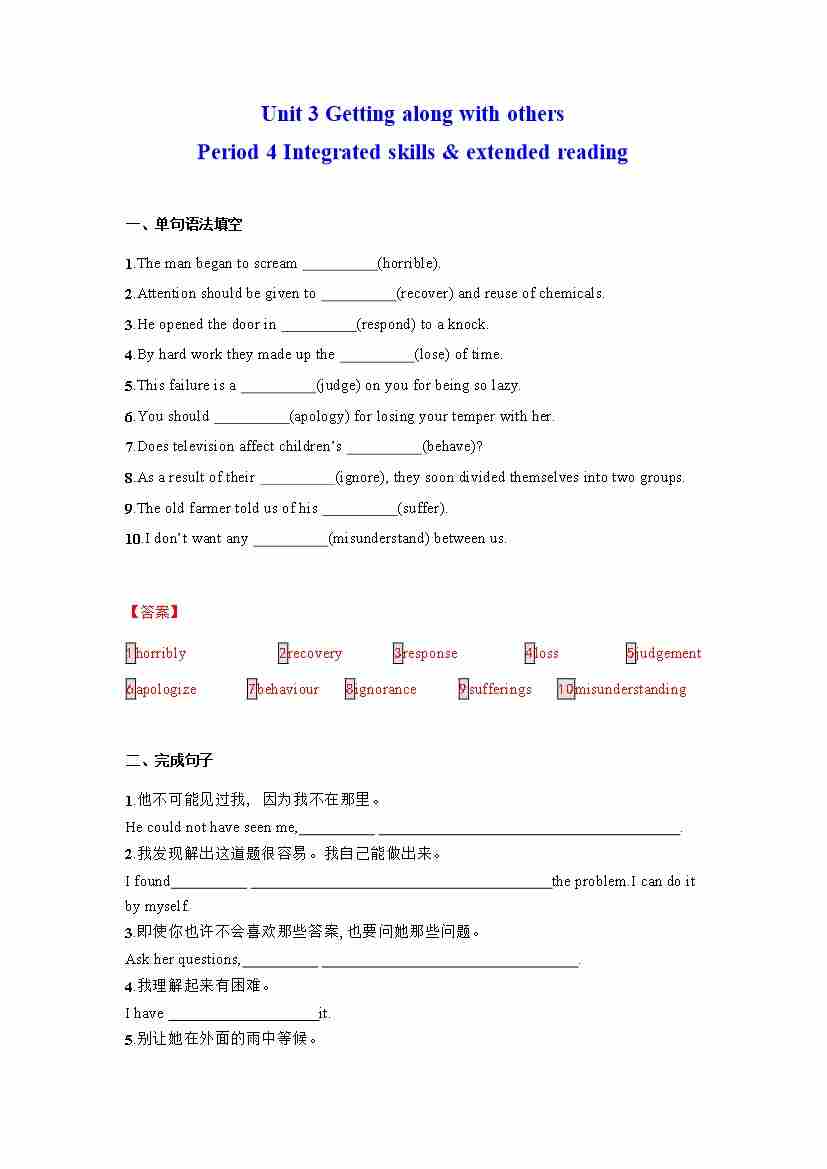 首页 > 全部 > 分层作业 > Unit 3 Getting along with others Period 4 Integrated skills & extended reading (分层练习)(解析版)---(译林版2020必修第一册)