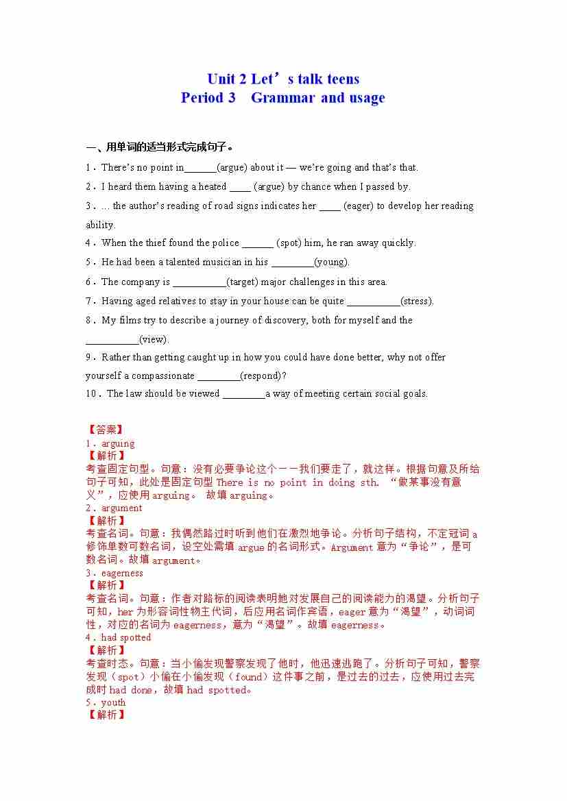 Unit 2 Let’s talk teens Period 3 Grammar and usage(分层练习)(解析版) ---(译林版2020必修第一册)