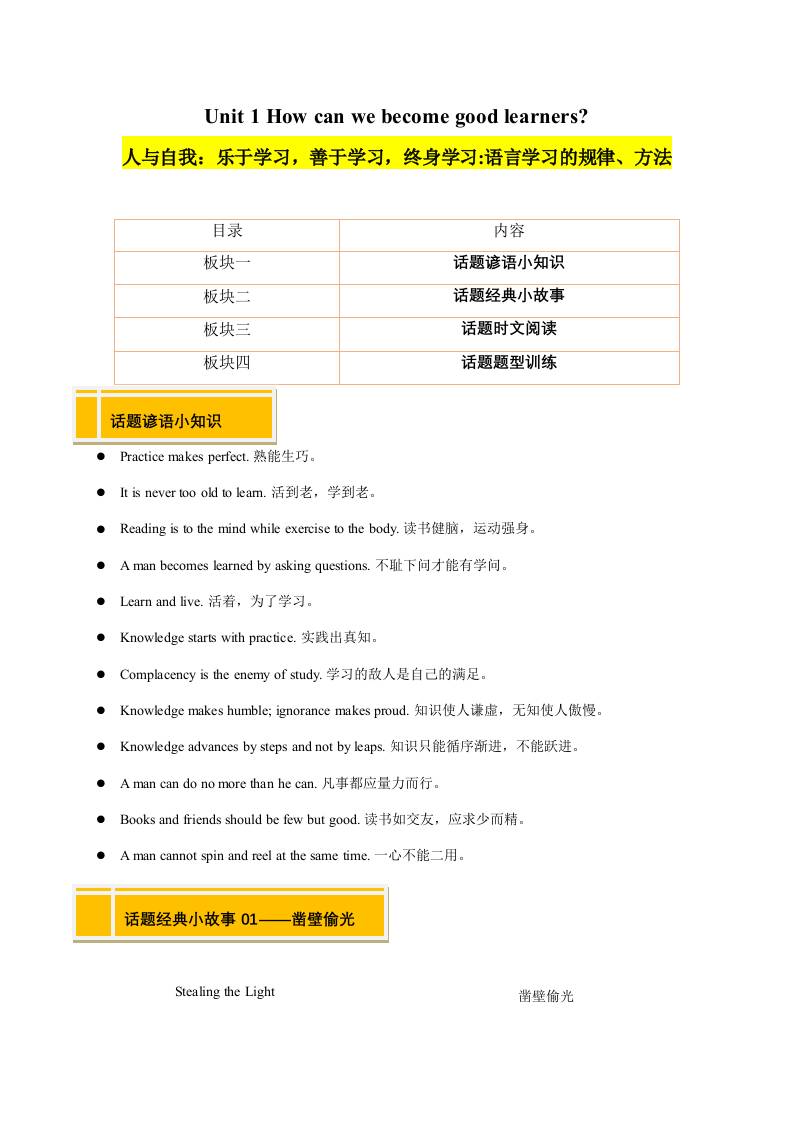 ②寒假专项培优-Unit 1 How can we become good learners? (人与自我:语言学习)【同步拓展阅读】 (学生版)2025年九年级英语寒假衔接讲练 (人教版)