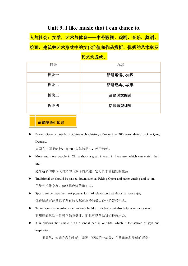 ②寒假专项培优-Unit 9 I like music that I can dance to. (人与社会:文学、艺术与体育) (教师版)2025年九年级英语寒假衔接讲练 (人教版)