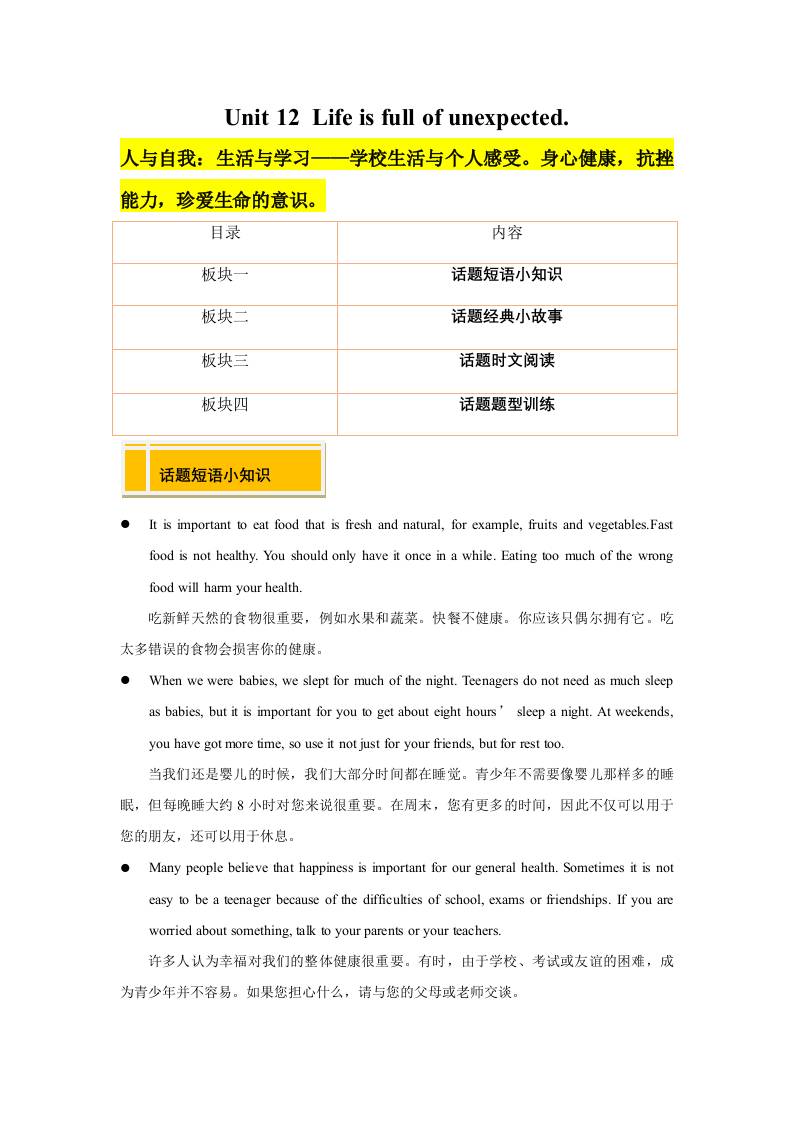 ②寒假专项培优-Unit 12 Life is full of unexpected. (人与自我:生活与学习) (教师版)2025年九年级英语寒假衔接讲练 (人教版)
