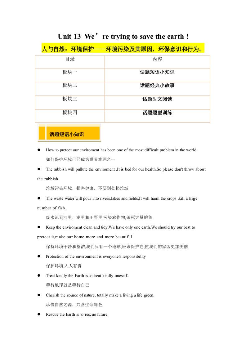 ②寒假专项培优-Unit 13 We’re trying to save the earth! (人与自然:环境保护) (学生版)2025年九年级英语寒假衔接讲练 (人教版)