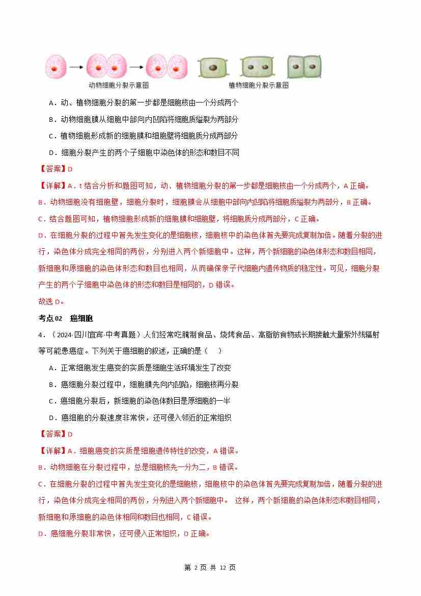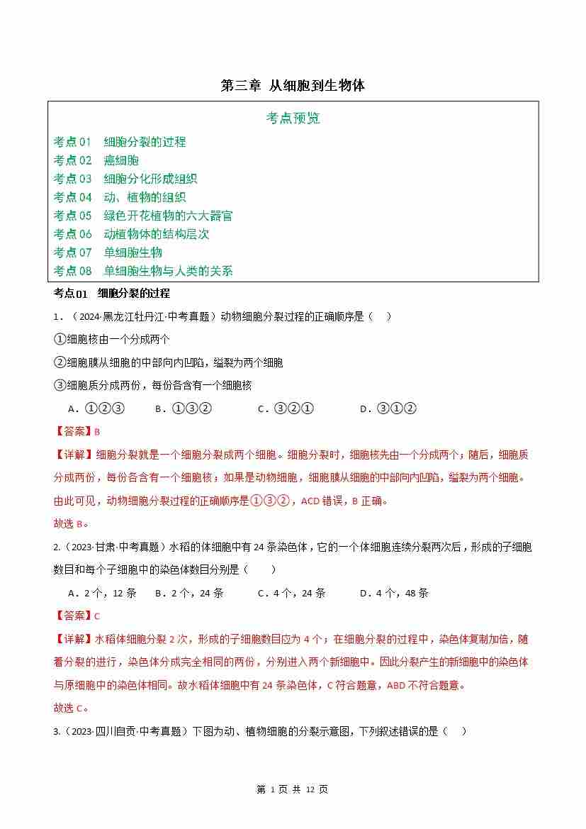 首页 > 全部 > 单元检测 > 第1单元第3章 从细胞到生物体【单元卷·考点卷】(8大考点)(解析版)