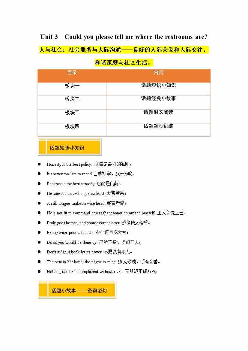 ②寒假专项培优-Unit 3 Could you please tell me where the restrooms are? (人与社会:社会服务与人际沟通) (学生版)2025年九年级英语寒假衔接讲练 (人教版)
