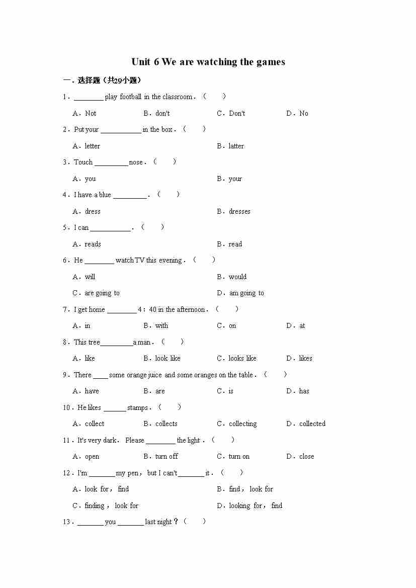 首页 > 全部 > 单元测试 > Unit 6 We're watching the games(有答案人教精通版