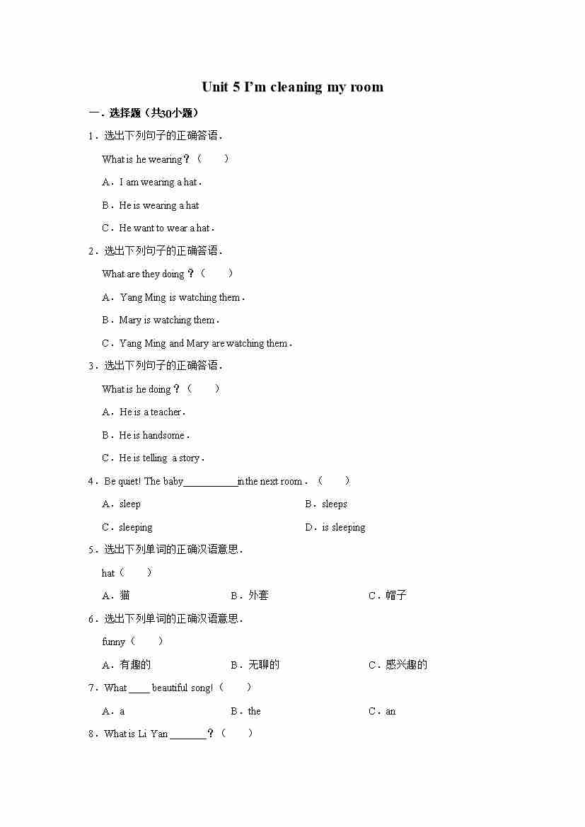 首页 > 全部 > 单元测试 > Unit 5 I'm cleaning my room(有答案人教精通版