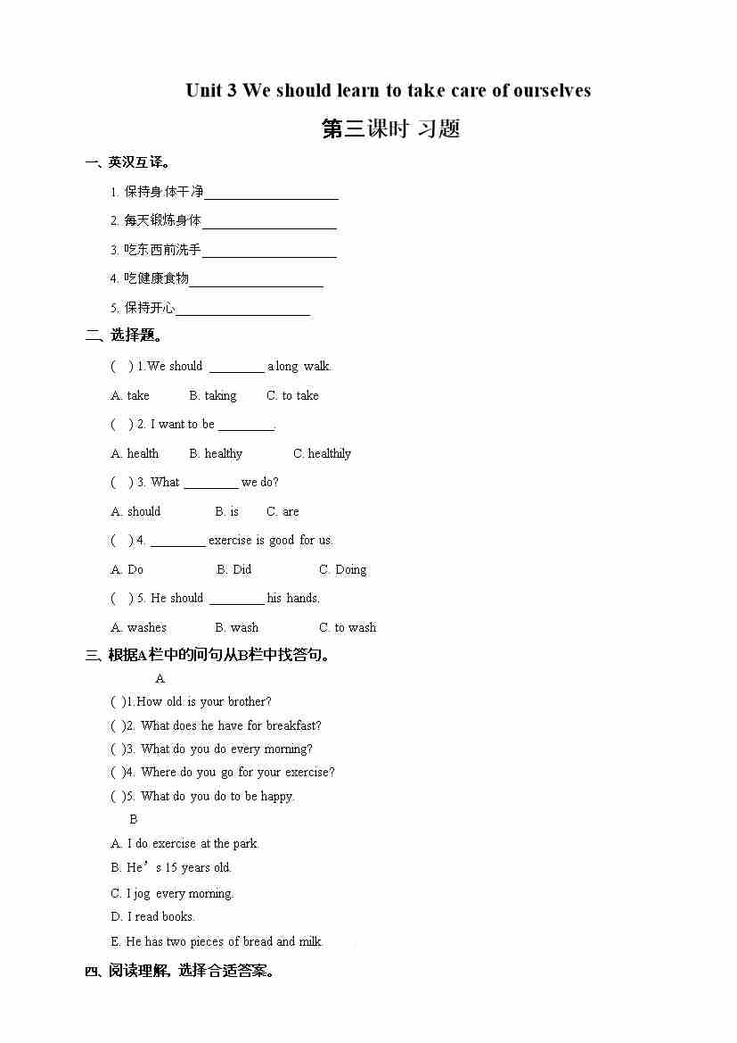 首页 > 全部 > 同步练习 > 六年级下册英语一课一练-Unit 3 We should learn to take care of ourselves 第三课时 湘少版(三起) (word版,含答案)