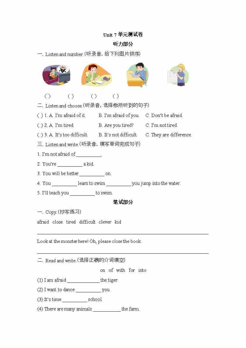 六年级下册英语单元测试 Unit7 I’m not afraid!单元测试卷 湘少版 (含答案)
