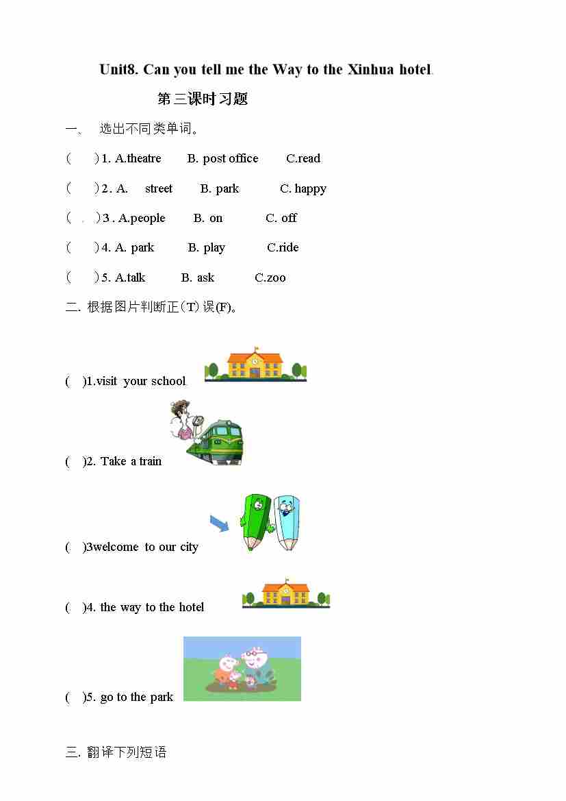 五年级下册英语一课一练-Unit 8 Can you tell me the way to theXinhua hotel 第三课时 湘少版三起(word版,含答案)