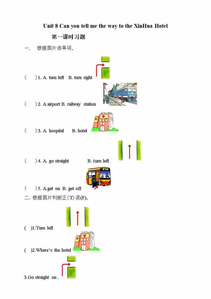 五年级下册英语一课一练-Unit 8 Can you tell me the way to the XinHua Hotel 第一课时 湘少版三起(word版,含答案)