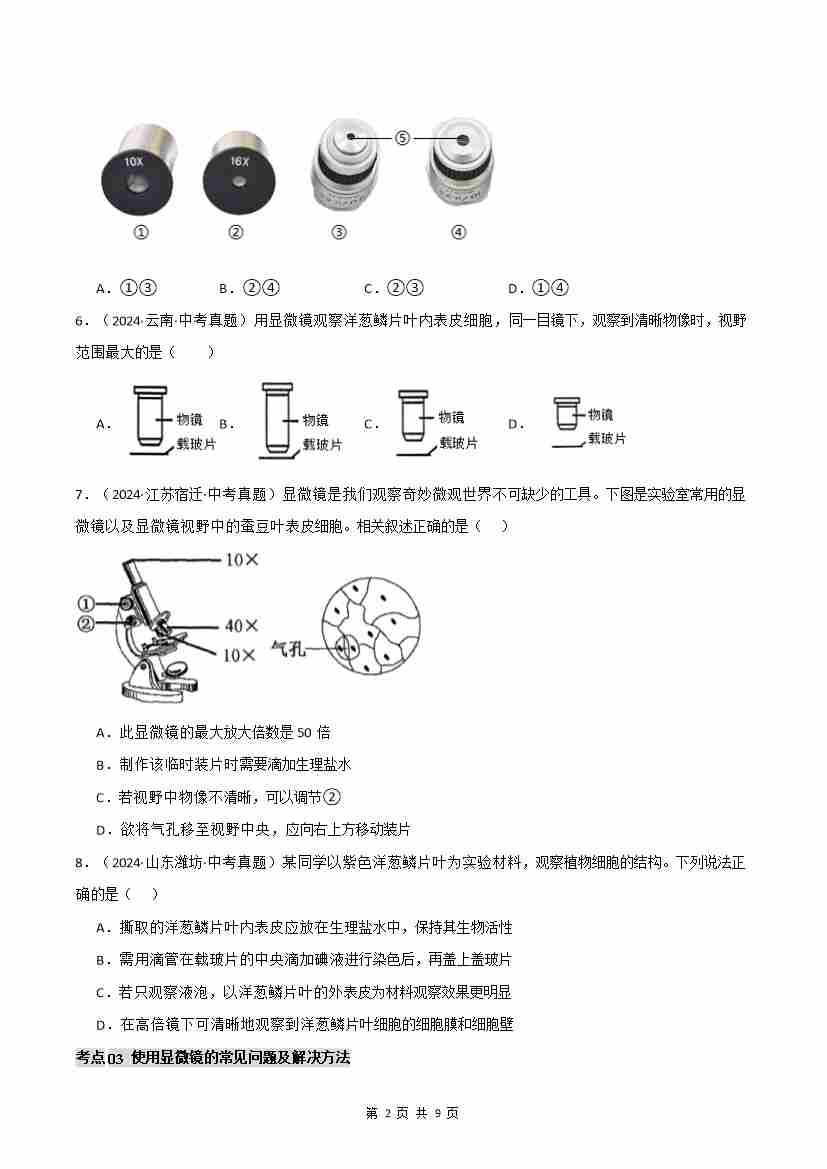 第1单元第2章 认识细胞【12大考点】(原卷版)
