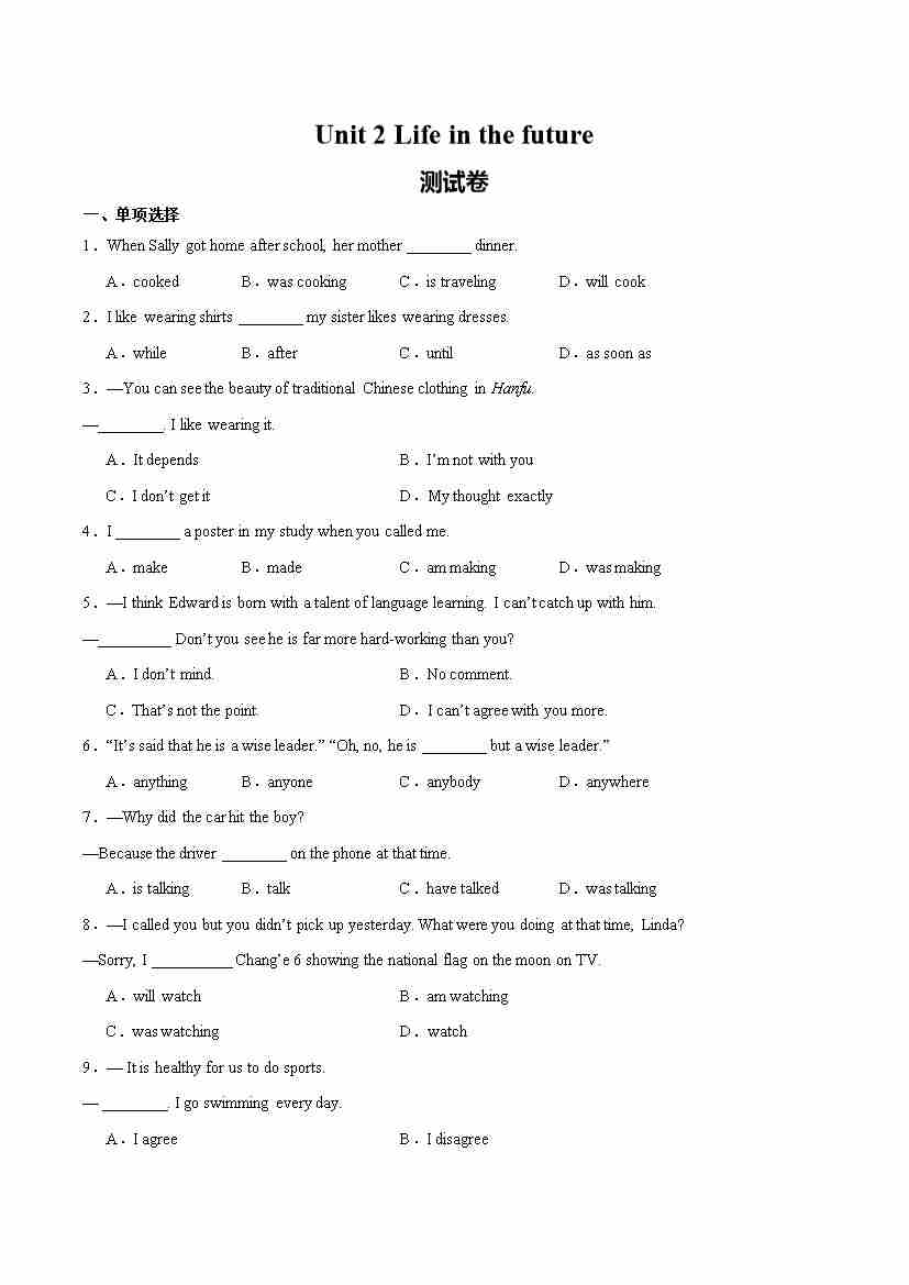 首页 > 全部 > 单元测试 > 06. Unit 2 Life in the future(单元卷·测试卷)(学生版)