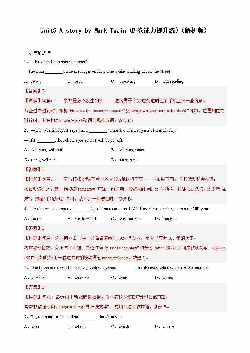 首页 > 全部 > 单元测试2 > Unit 5(B卷·能力提升练)(解析版)-【单元测试】九年级下册英语分层训练AB卷(牛津上海版)
