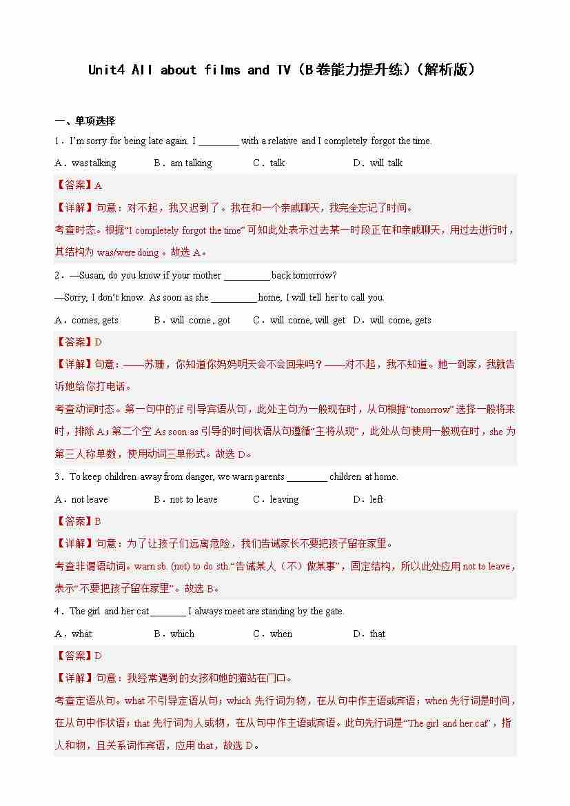 首页 > 全部 > 单元测试2 > Unit 4(B卷·能力提升练)(解析版)-【单元测试】九年级下册英语分层训练AB卷(牛津上海版)