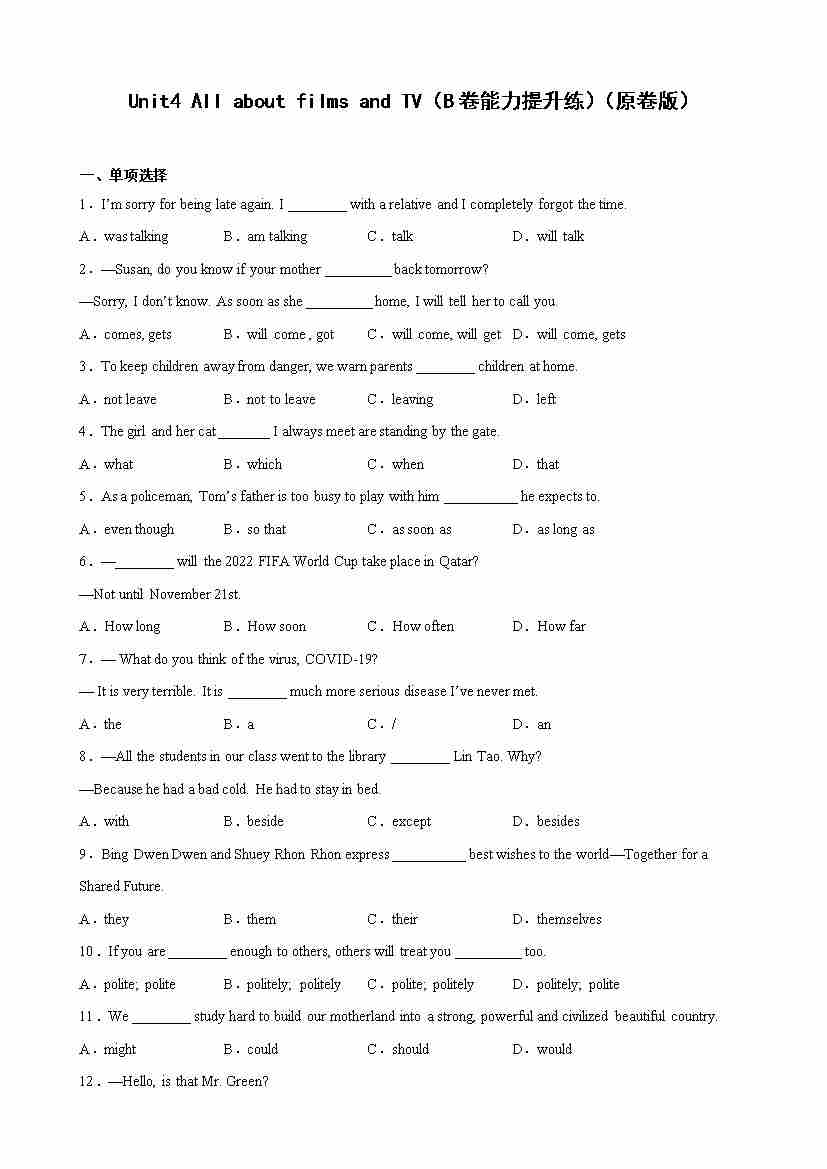 首页 > 全部 > 单元测试2 > Unit 4(B卷·能力提升练)(原卷版)-【单元测试】九年级下册英语分层训练AB卷(牛津上海版)