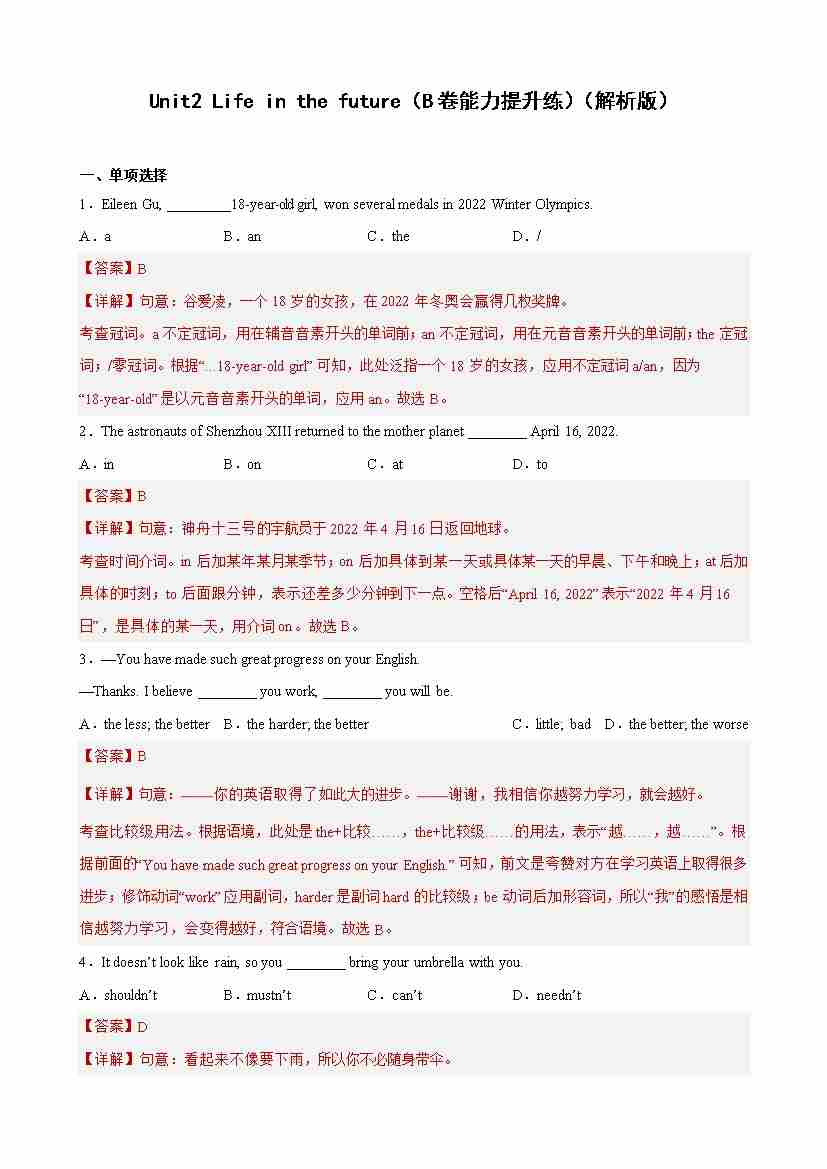 首页 > 全部 > 单元测试2 > Unit 2(B卷·能力提升练)(解析版)-【单元测试】九年级下册英语分层训练AB卷(牛津上海版)