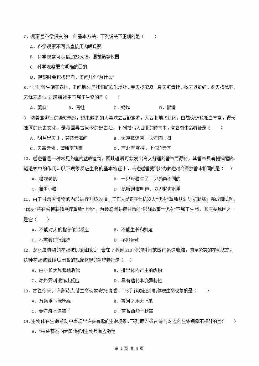 首页 > 全部 > 单元检测 > 第1单元第1章 认识生物【单元测试卷】(原卷版)