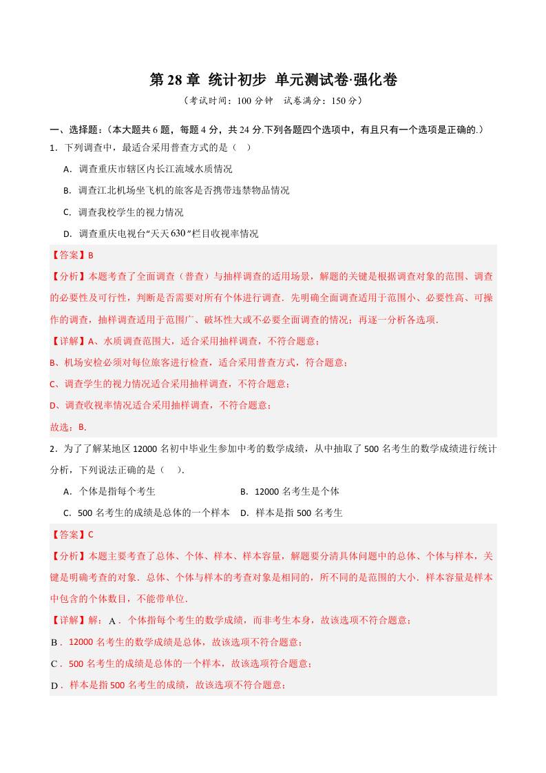 第28章 统计初步 (高效培优单元测试·强化卷)(解析版)