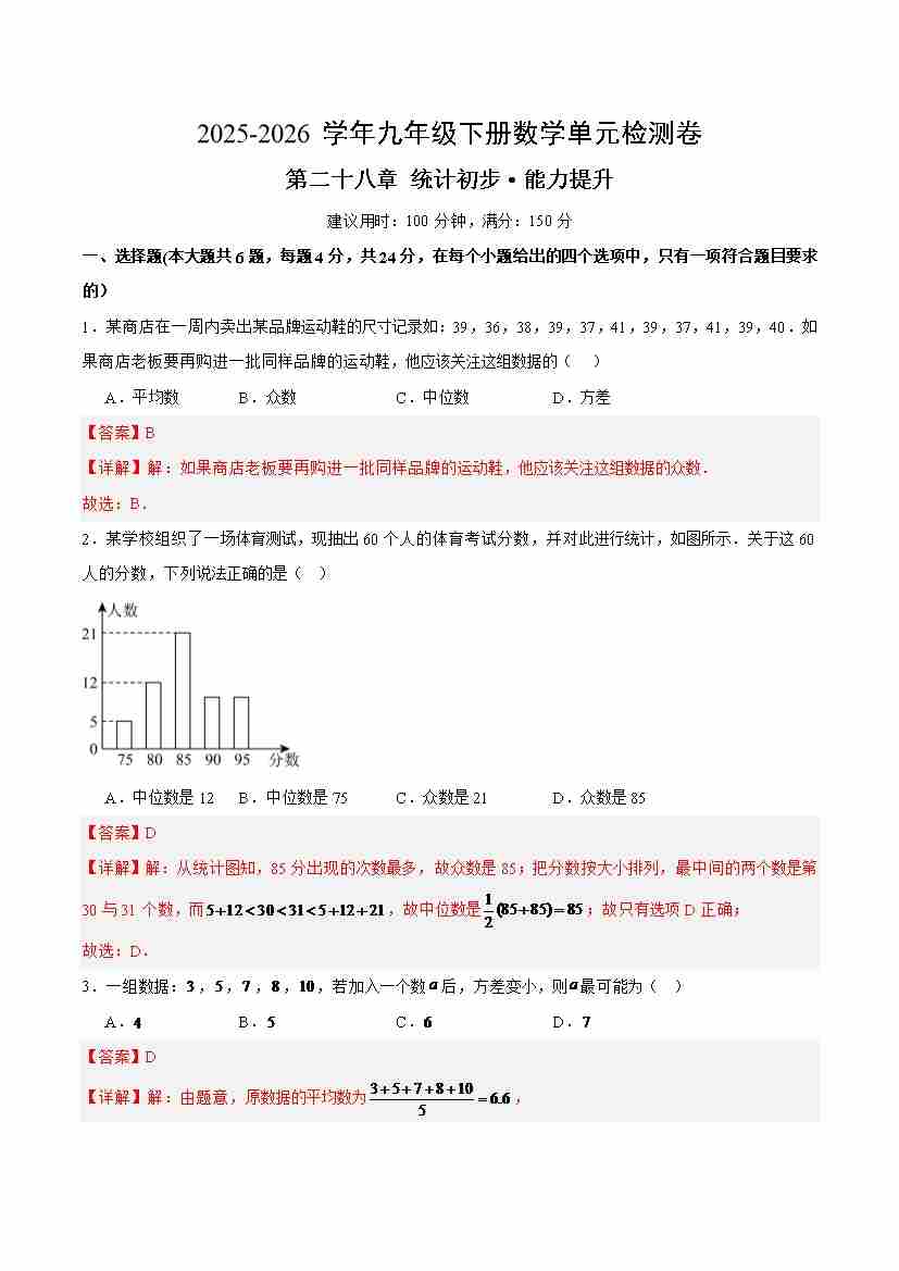 第二十八章 统计初步(单元测试·提升卷)(全解全析)