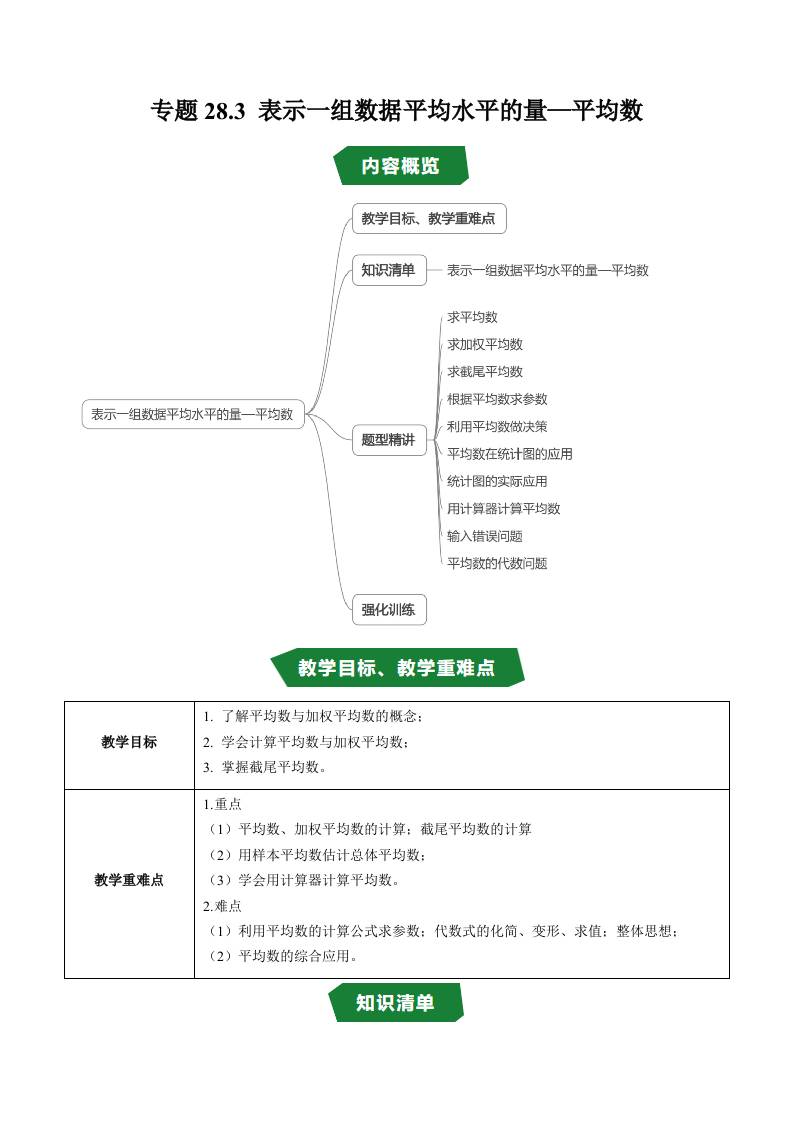 专题28.3 表示一组数据平均水平的量—平均数(高效培优讲义)(解析版)