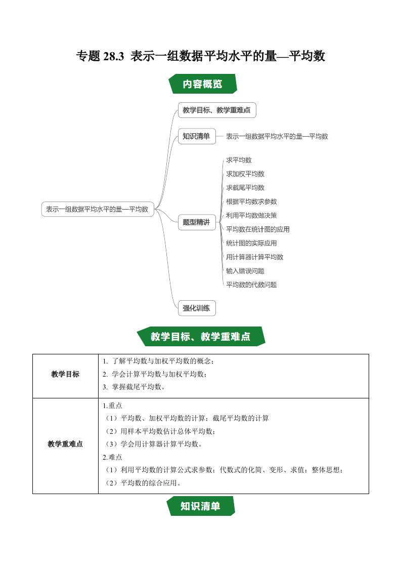 专题28.3 表示一组数据平均水平的量—平均数(高效培优讲义)(原卷版)