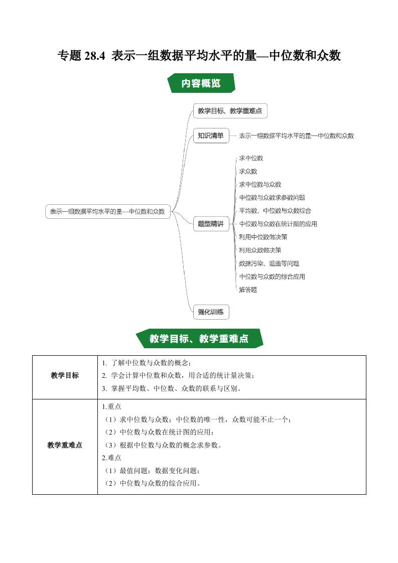 首页 > 全部 > 同步讲义 > 专题28.4 表示一组数据平均水平的量—中位数和众数(高效培优讲义)(原卷版)
