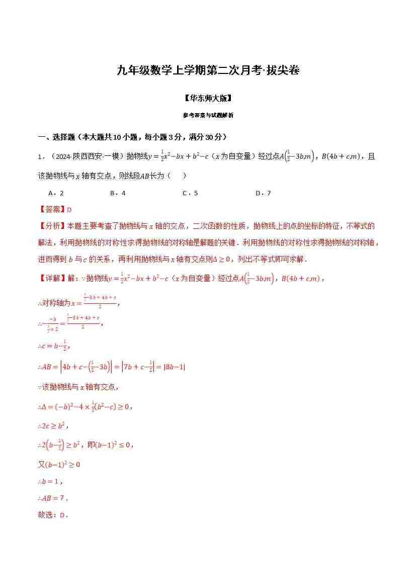 首页 > 全部 > 月考试卷 > 九年级数学上学期第二次月考·拔尖卷,举一反三,测试范围:第21章 二次根式~第26章 二次函数)(解析版)