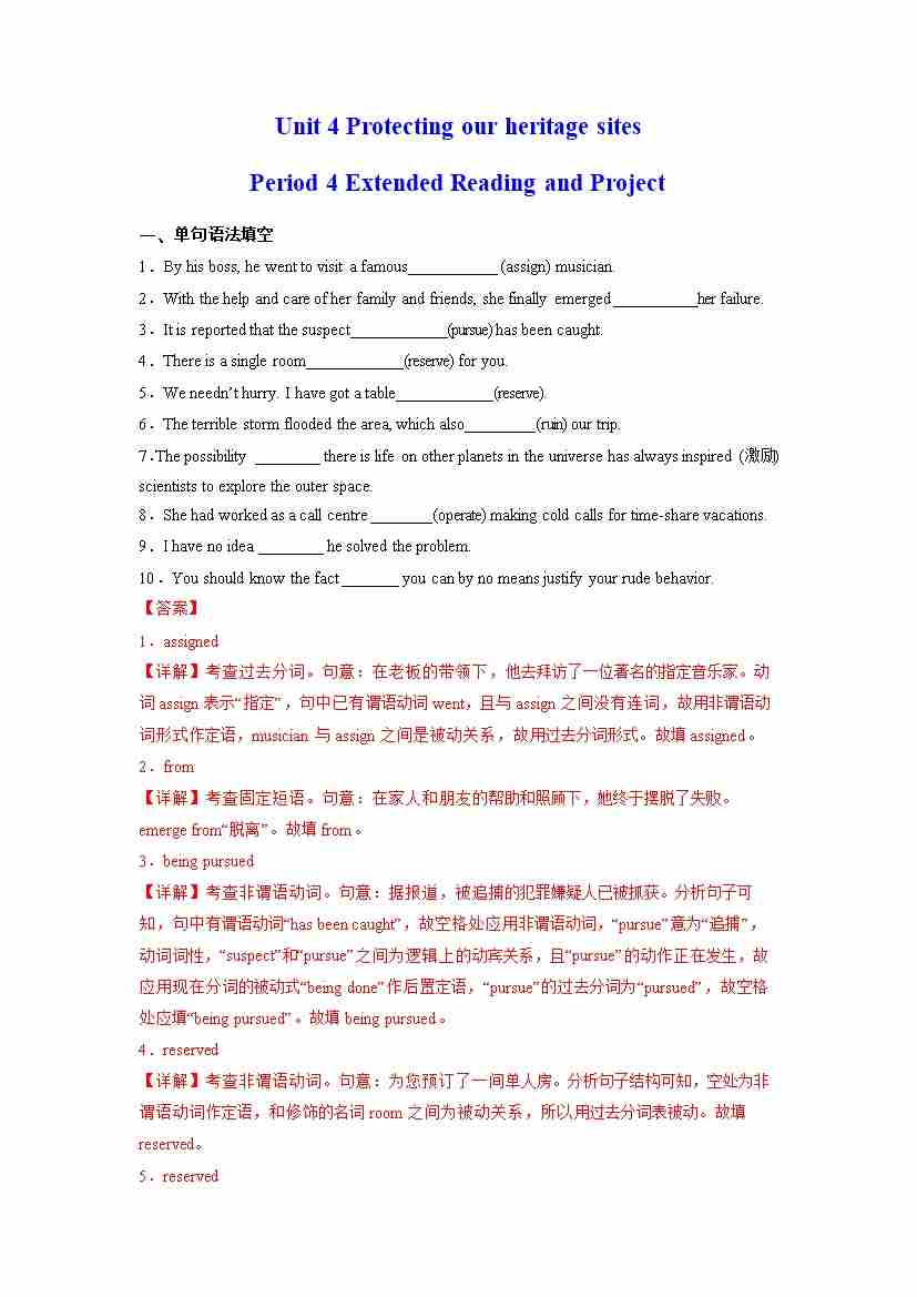 Unit 4 Protecting our heritage sites Period 4 Extended Reading(分层练习)(解析版)- (译林版2020选择性必修第三册)