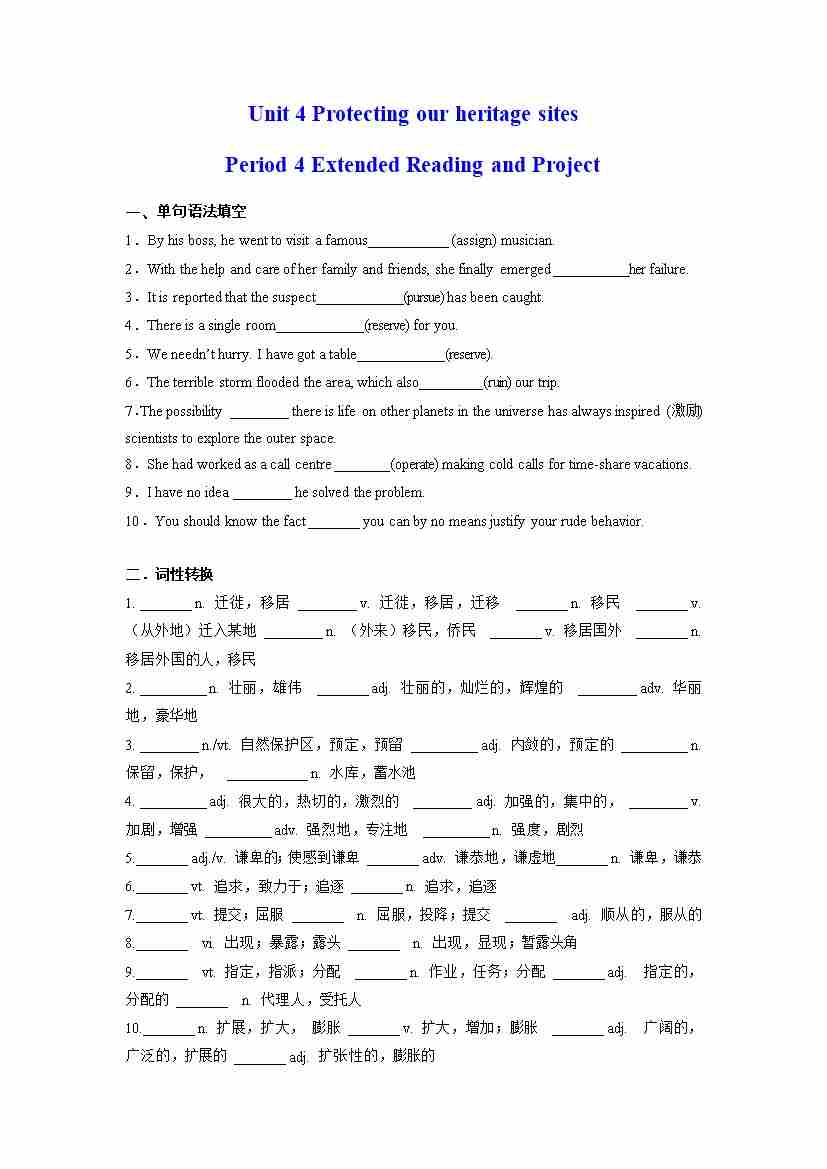 首页 > 全部 > 分层作业 > Unit 4 Protecting our heritage sites Period 4 Extended Reading(分层练习)(原卷版)- (译林版2020选择性必修第三册)