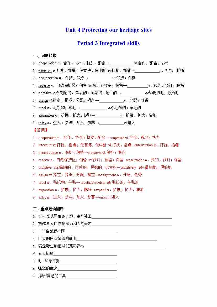 首页 > 全部 > 分层作业 > Unit 4 Protecting our heritage sites Period 3 Integrated skills(分层练习)(解析版)- (译林版2020选择性必修第三册)
