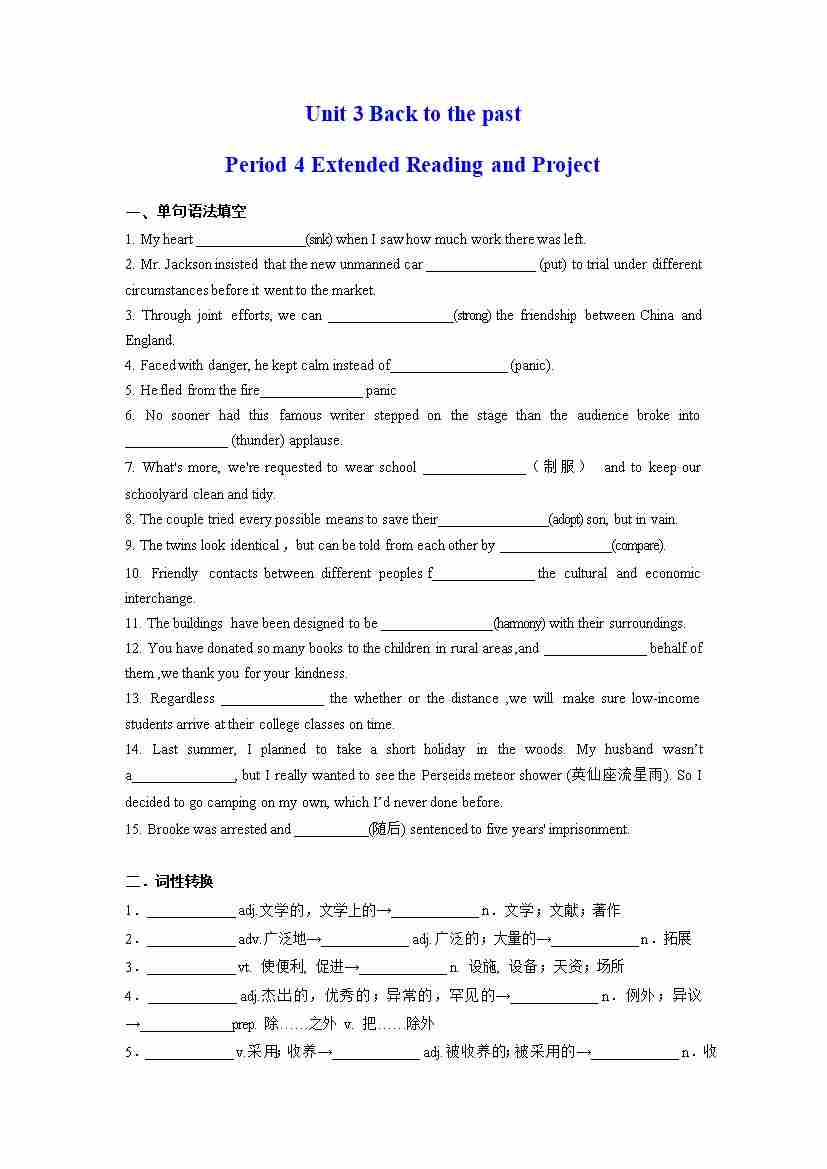 首页 > 全部 > 分层作业 > Unit 3 Back to the past Period 4 Extended Reading(分层练习)(原卷版)- (译林版2020选择性必修第三册)
