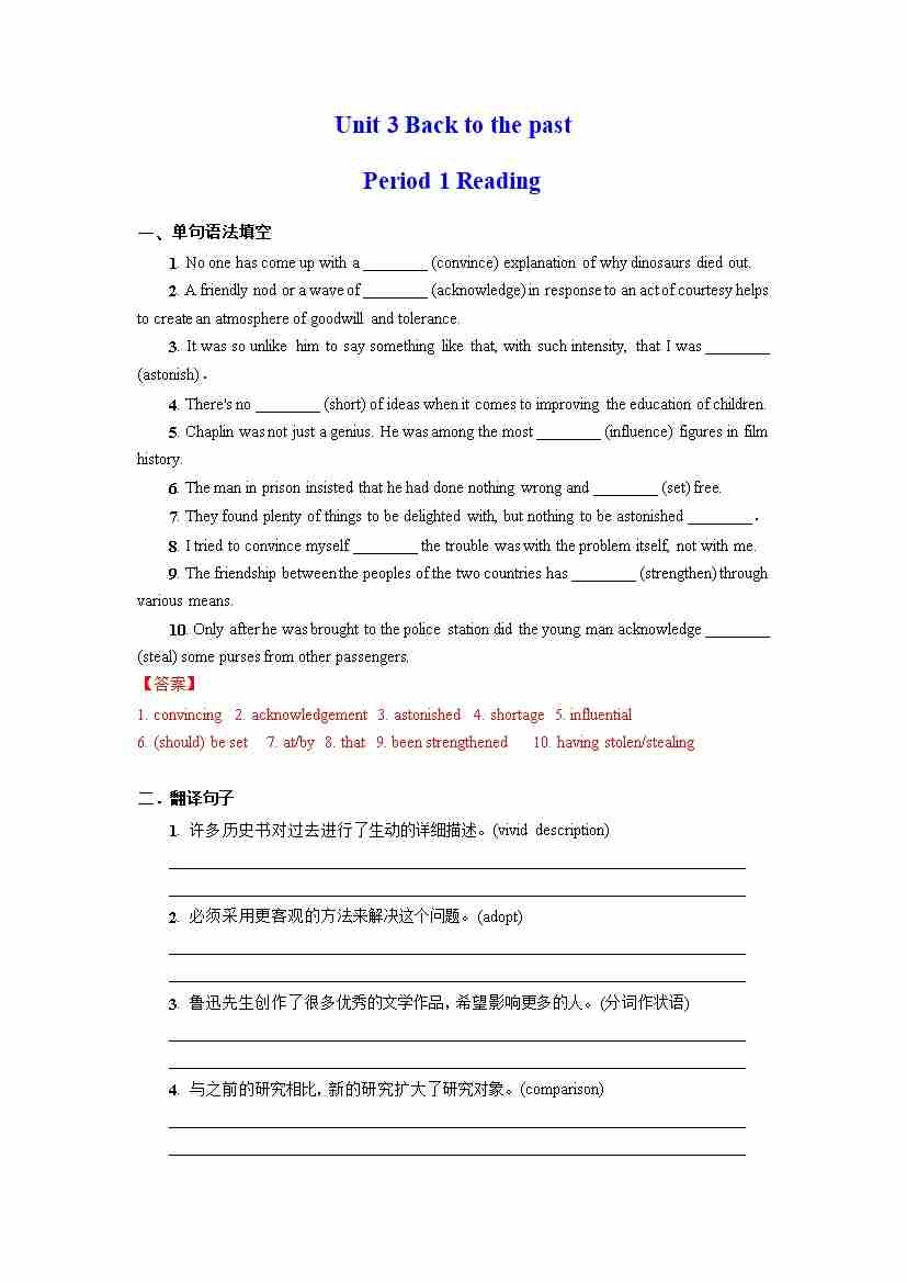首页 > 全部 > 分层作业 > Unit 3 Back to the past Period 1 Reading(分层练习)(解析版)- (译林版2020选择性必修第三册)